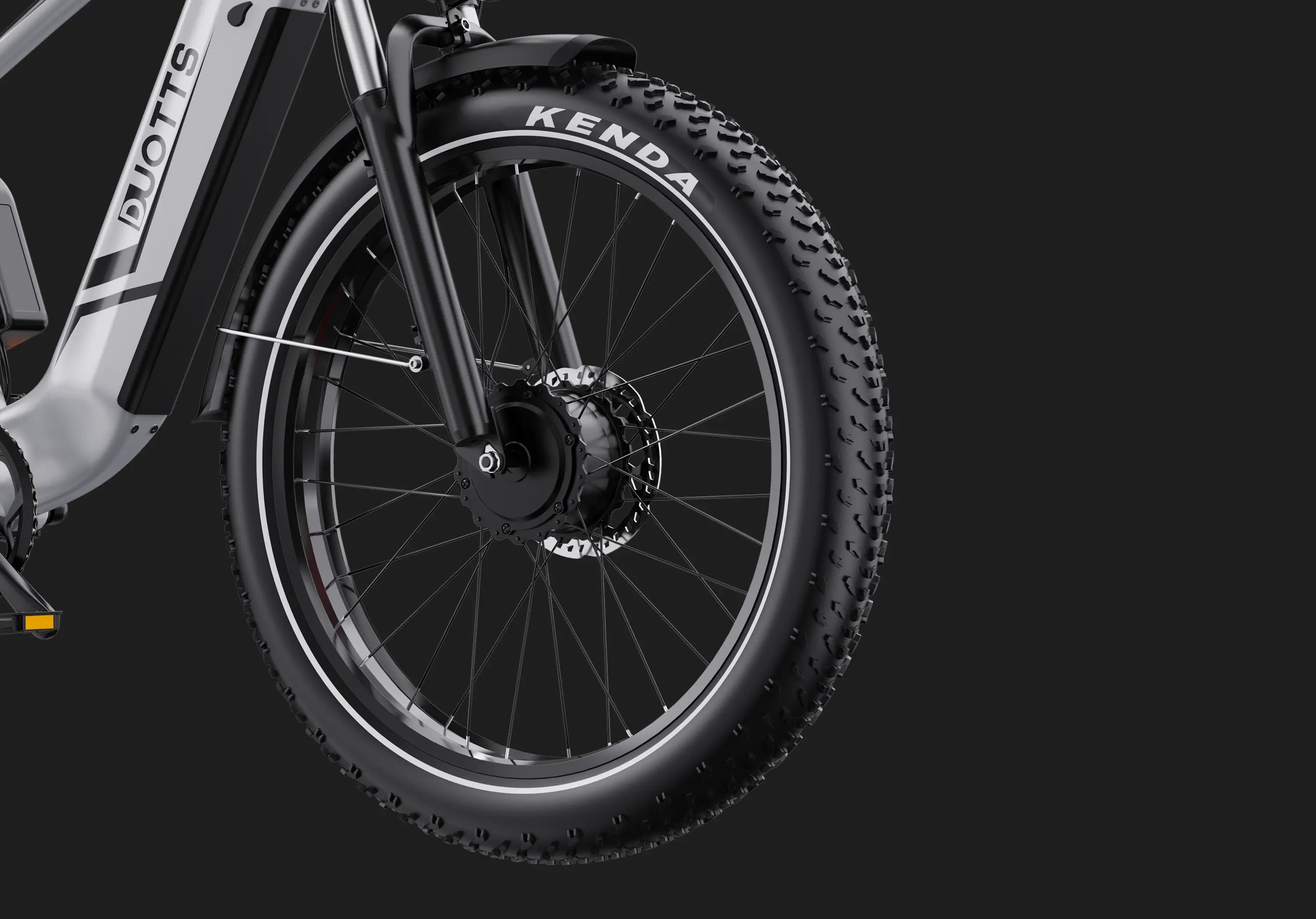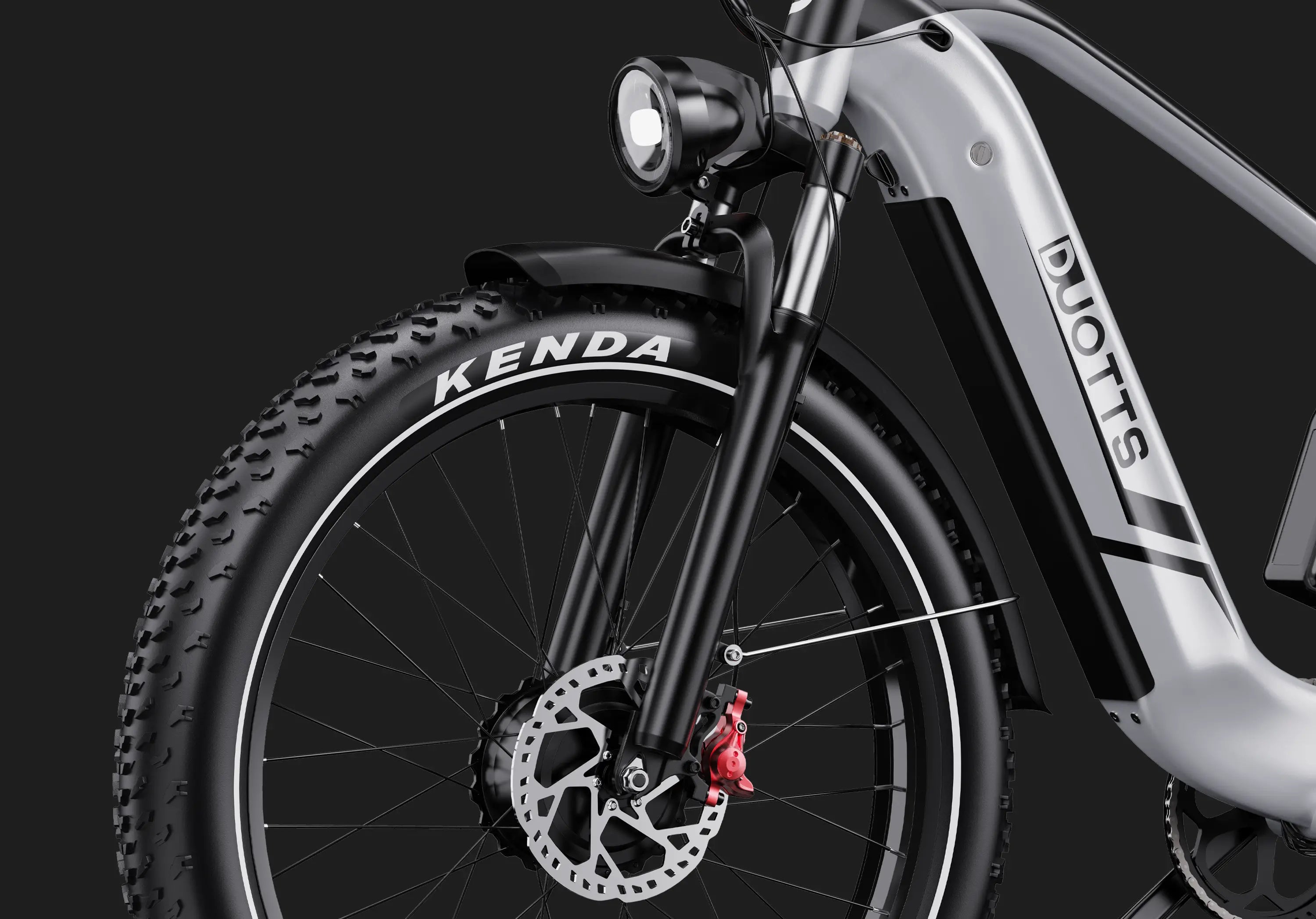 Ressentez une puissance sans limites avec le Duotts F26 — ses deux moteurs de 750W et ses pneus larges Kenda 26×4.0" vous offrent adhérence, puissance et confiance pour rouler sur la neige, le sable et les terrains accidentés. Que vous gravissiez des pentes raides ou exploriez de vastes paysages, chaque sortie est audacieuse, fluide et pleine de sensations.